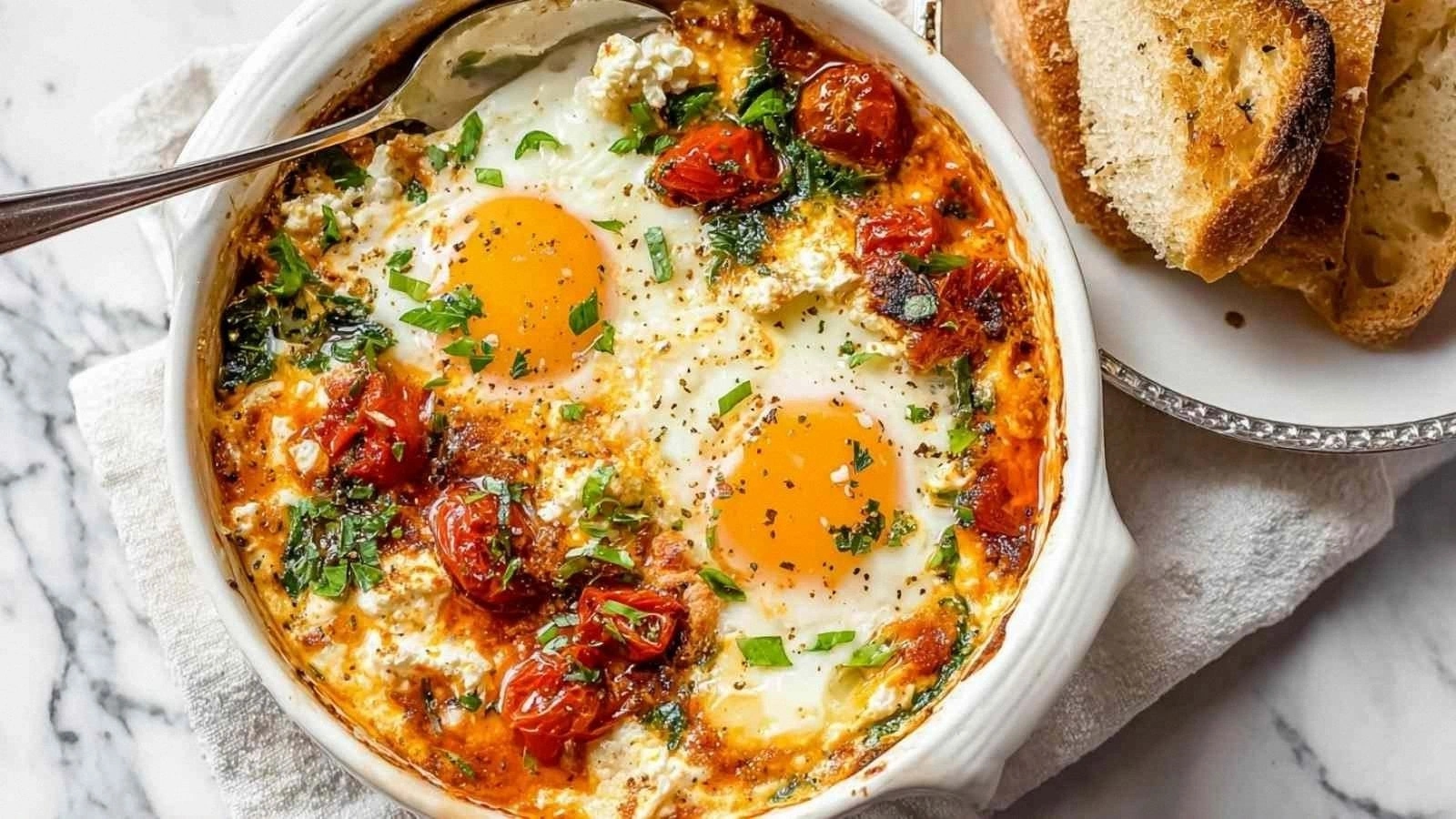 Many home cooks bake at a high temperature, hoping for a quick result. However, a moderate heat of 375°F (190°C) allows the eggs to cook evenly while the feta melts into a silky sauce. If you’re in a hurry, lower the temperature to 350°F (175°C) and add a few extra minutes; the eggs will still turn out perfectly runny.